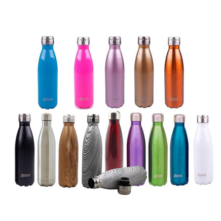 These drink bottles are made from 18/8 stainless steel. The Oasis Insulated Drink Bottles will not sweat and will stay cold for up to 20 hours and hot for up to 10 hours thanks to the double wall insultated design. They will not leak or leave wet marks in your bag or on your bench.
